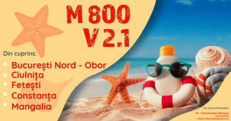 On this route, you will experience M800. This section is between Bucharest North and Mangalia, with a lenght of 268 km. From Bucharest North to Constanta the line is double electrified and from Constanta to Mangalia the line is single non-electrified. Mostly, on the Bucuresti North – Constanta section, the signaling is TMV with BLA 4i, but some stations are equipped with DTV signals. On the Constanta – Mangalia section, the line is equipped with DTV signals with group exit signals, and Mangalia station is equipped with mechanical traffic lights. The stations that are available on the route: Bucharest North, Bucharest Baneasa, Pantelimon, Pasarea, Branesti, Islaz, Fundulea, Mostistea, Sarulesti, Lehliu, Dor Marunt, Dragos Voda, Ciulnita, Perisoru, Jegalia, Baraganu, Fetesti, Ovidiu, Dunarea, Cernavoda Pod, Saligny Est, Mircea Voda, Medgidia, Dorobantu, Basarabi, Valu lui Traian, Palas, Constanta, Agigea Nord, Agigea Ecluza, Eforie Nord, Eforie Sud, Costinesti, Neptun, Mangalia. Also, the route offers Bucharest North depot, Bucharest North Rail Yard, Bucharest North wagon depot a small part of the Constanta Harbor, Ferryboat Terminal, Palas Rail Yard, Palas Depot, Medgidia Rail Yard, LaFarge Rail Yard, Fetesti Depot, Mangalia Depot and much more yards to make shunting and awesome scenarios.